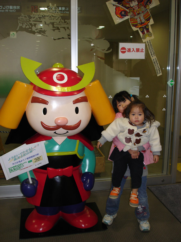 ホテルをチェックアウトして、まずは松山城に行ってみた。 登山道でも20分もあれば登れるらしいが、子供がいるので、しんどいかな。