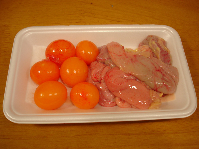 調理する前の気持ち悪さもなく、味は美味しい。 鳥の皮のような味がするな。 玉子の部分は、黄身で味があまりしない玉子のような感じ。