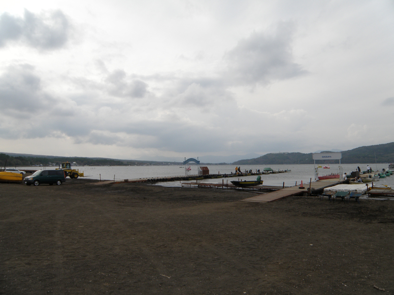 荷物を置いて、山中湖に向かう。山道を走ること10kmほど。 山中湖に到着。