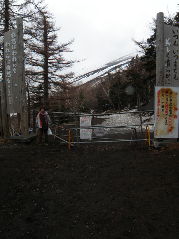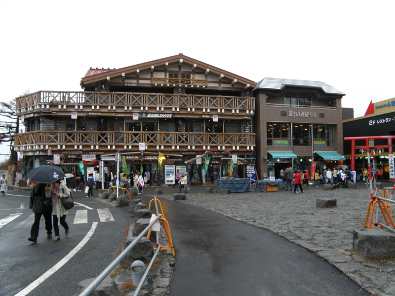 5合目に到着したが、天気も悪いのでとても寒い。 車についている外気温計では、4度となっているが、風がけっこう強いため、体感温度は0度以下。 山小屋でお土産を買って、写真だけ撮ってすぐに車に戻る。 富士吉田口は雪崩の危険があるため、冬季は登山道が閉鎖されてしまっている……