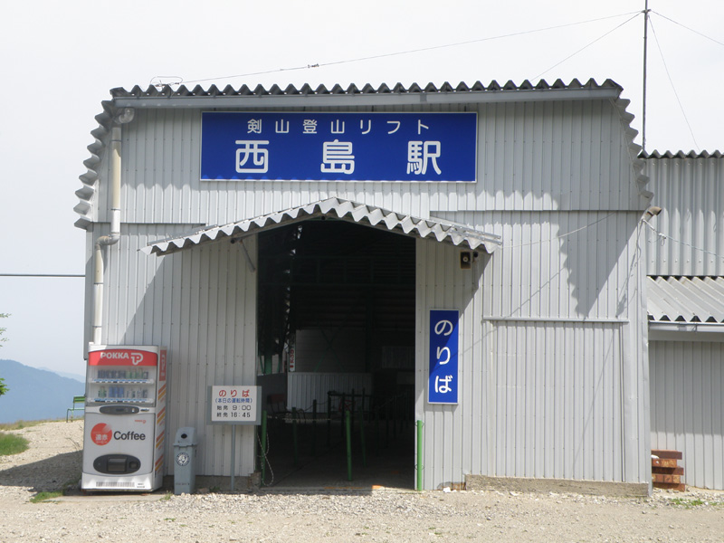 神社の脇から山道に入って、リフト道と交差してグネグネ高度を上げて登って行く。 しばらく歩くと視界が開け、野営場が見えてくる。 もうリフト駅の西島は近い。
