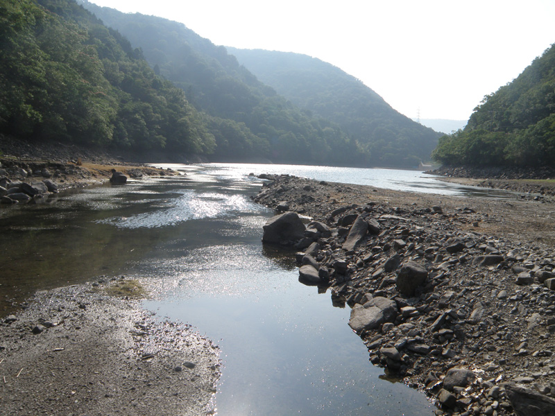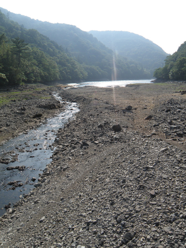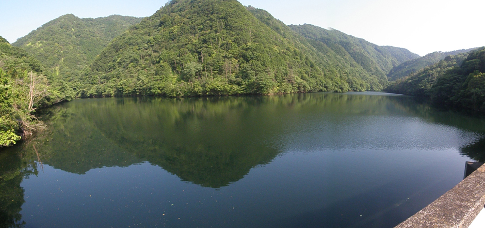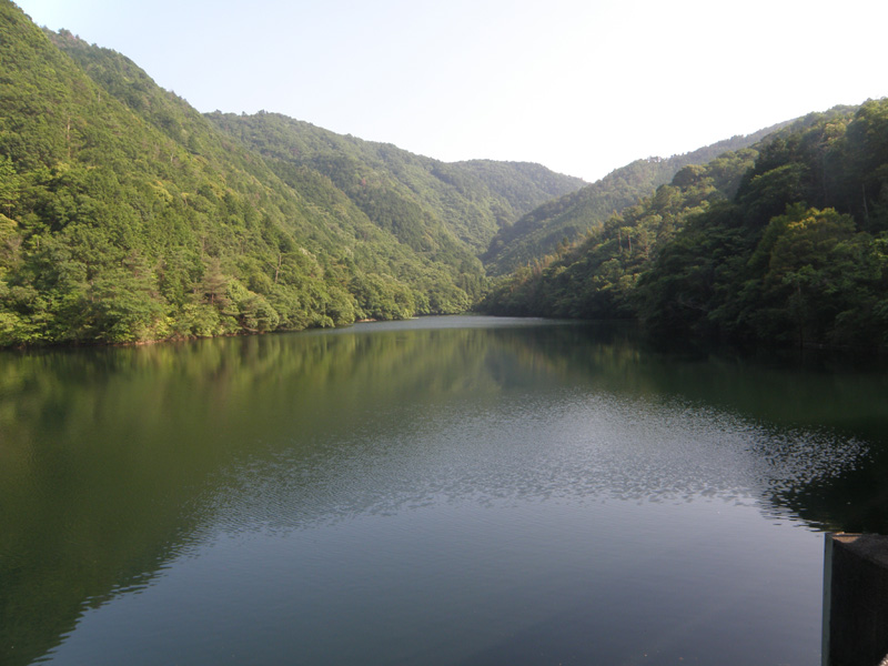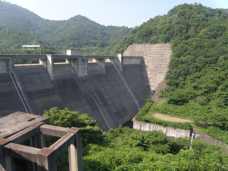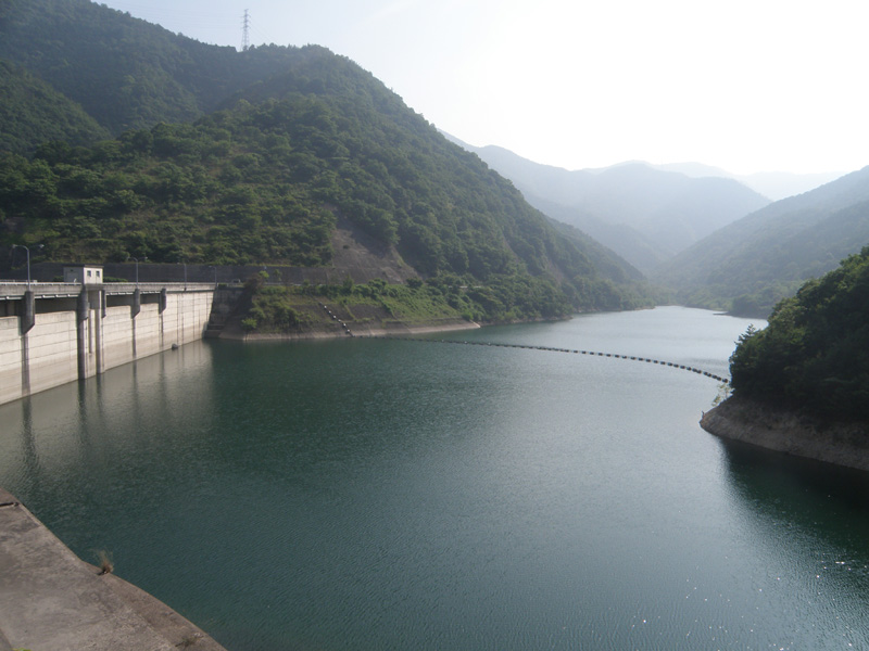 そして川股ダムに到着。 ボロっちいダムだけど、水深が18mもあるらしい。 ダムってこんなに深いんだね。