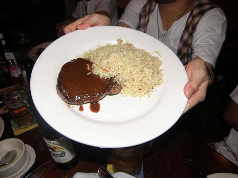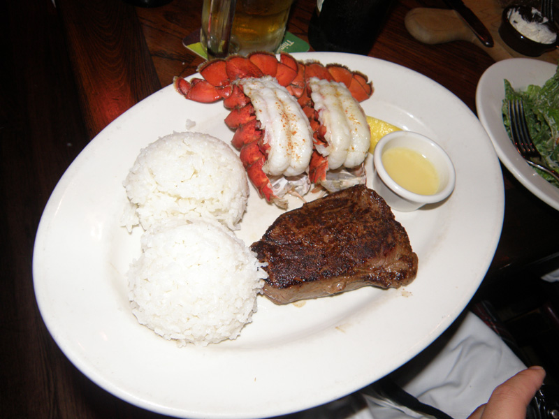 今日の夕飯はホテルの前にある「Outback」というステーキのお店に行った。 日本人専用のメニューを出された。 一番小さな肉で8オンス。 単位が違うので、それがどれくらいの大きさだかわからなかったが、どうせ食べられないだろうから、一番小さなやつを頼んだ。 しかし……その8オンスの肉すら食べられなかった。 ご飯は全く食べず、食前に出されたパンも手をつけず、肉のみを食べたのに…… ものすごいお腹いっぱいになってそのお店を後にした。 前のテーブルにいた外国人たちはものすごい量のポテトとものすごい量のサラダとものすごい量の肉を食べていた。 が、けっきょく食べきれずにドギーバッグに入れてもらっていた。