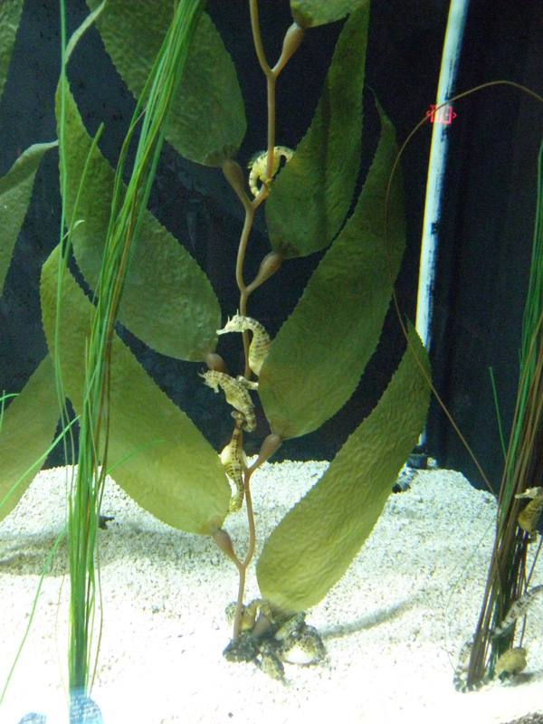 奥の方に行ったら、2階に上がるエスカレータがあり、そこには小さな水槽に入れられたエビやタツノオトシゴやウニなどがいた。