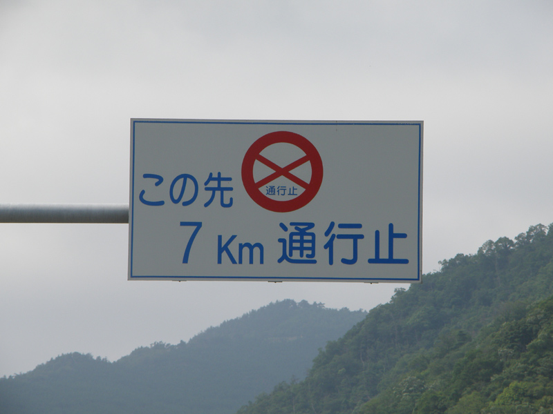 県道34号線を走りすぐに、「この先通行止め」の案内の看板が。