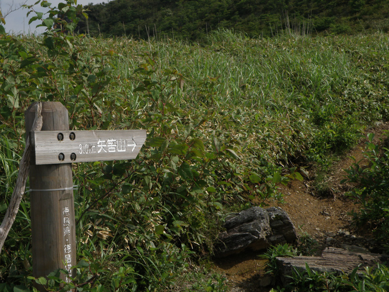 歩き始めてからちょうど1時間。 サガリハゲ山との分岐に到着。 マップだとここまで1時間40分となっていたので、そのつもりで歩いてきたので、すこし拍子抜けだった。 ここから矢筈山山頂まで50分らしい。 距離にして800m。