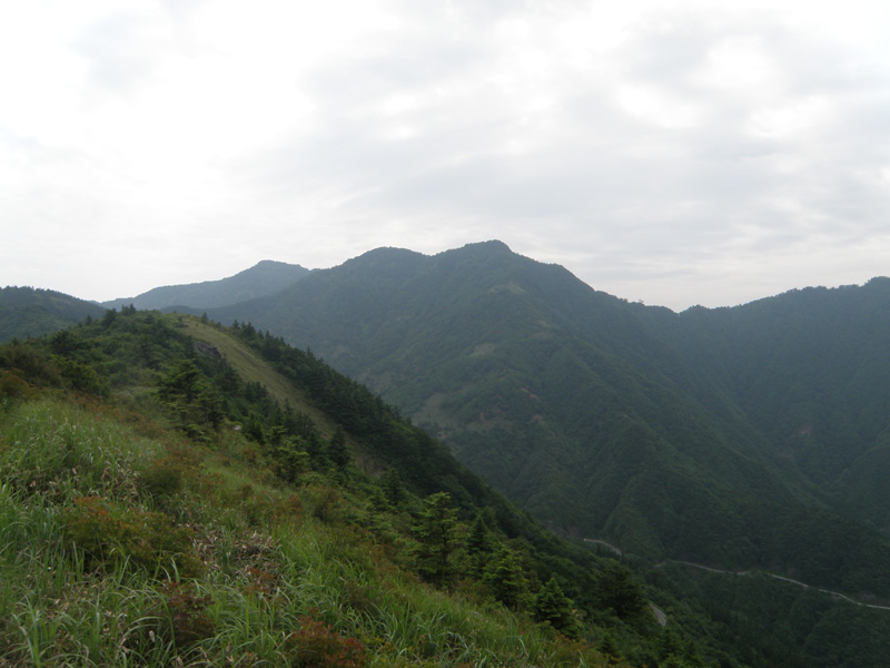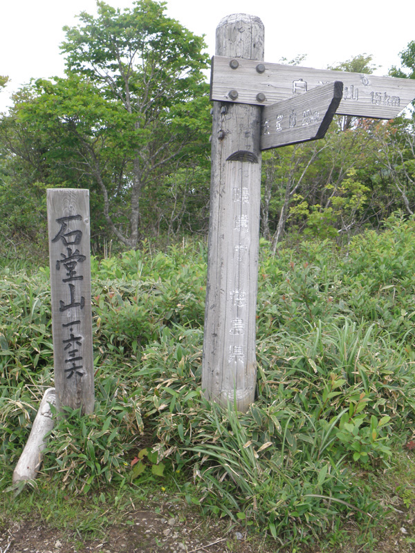 あまり長居してると雨が降ってくるかもしれないので、そろそろ石堂山の方に向かうか。 石堂山は標高が1636mなので200mも低い。 つまり帰ってくるときはまた1848mまで上がってこないといけないのだ。