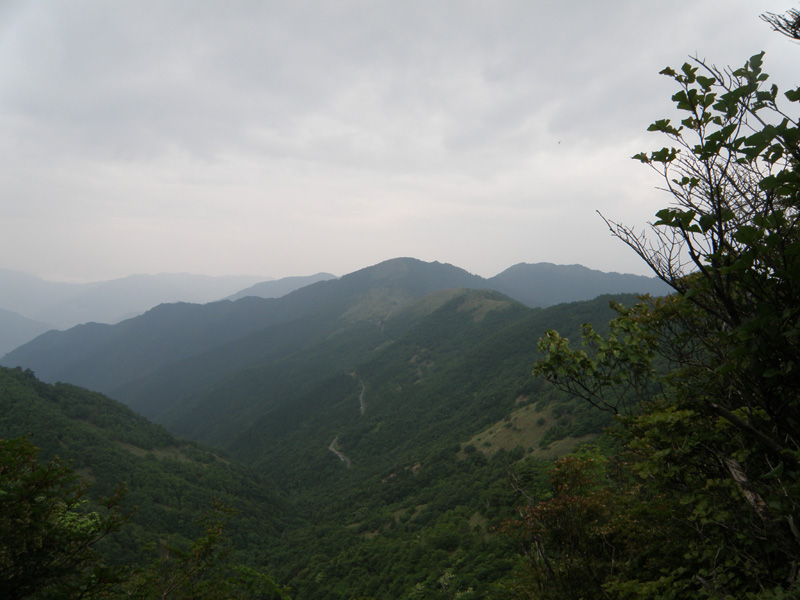 吉野川沿いの国道を走り、徳島県道44号線を落合峠を目指して進む。 約15km走ったところで風呂塔との分岐、そこから14kmほどで落合峠に到着。 今日は天気が微妙かなぁ……