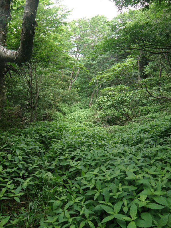 登山道はというと……深い草が多い茂り足元が見えない地帯があった。 右側が谷になっているので少し怖い。