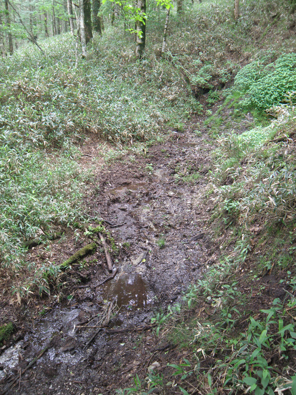 石堂山山頂まであと数百メートルくらいのところで、水場の案内看板があった。 水は足りているが、水場を知っておいて損はないので、どんな水場か見に行ってみた。 すると……