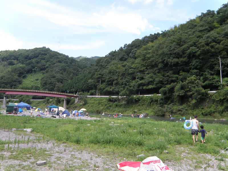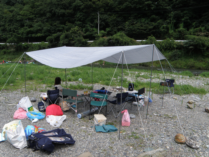 9時くらいに出発し、10時くらいには川原に到着。 さっそくテントやイスやテーブルなどを準備して、水着に着替えて川に行ってみた。 オレ、今まで川で遊んだことがないな。 オレ自身としても初めての川遊びだ。