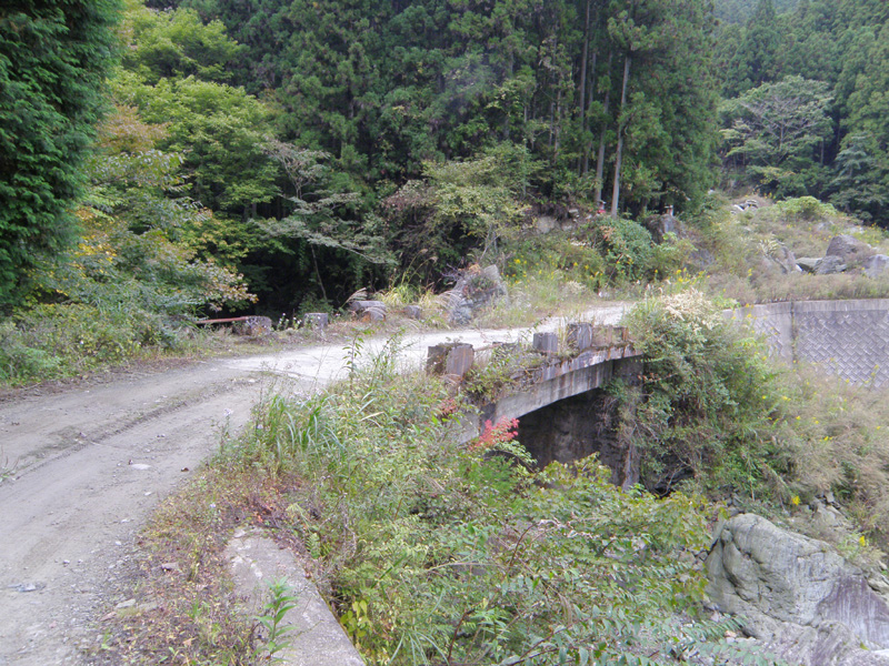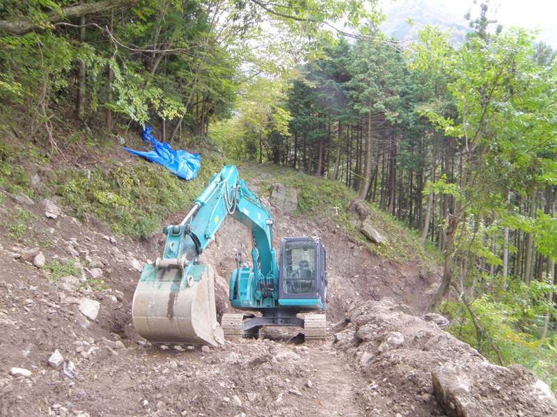 砂利道を走り、ようやく崩落箇所までやってきた。 既に工事が始まっていて、そのうち直るのだろうか。