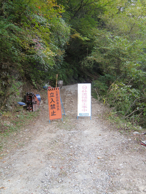 しばらく歩き、また崩落現場があった。 ここもバイク通過は無理だな。 ここも直してもらわないと、登山口入口まで車でいけない。 まぁ、ここまで入ってこれたら十分か。