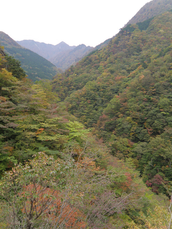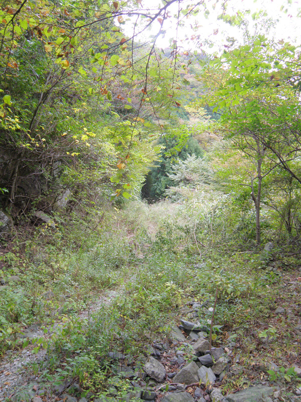 荒れ果てた林道を歩く。 木々が色づいてきて綺麗。