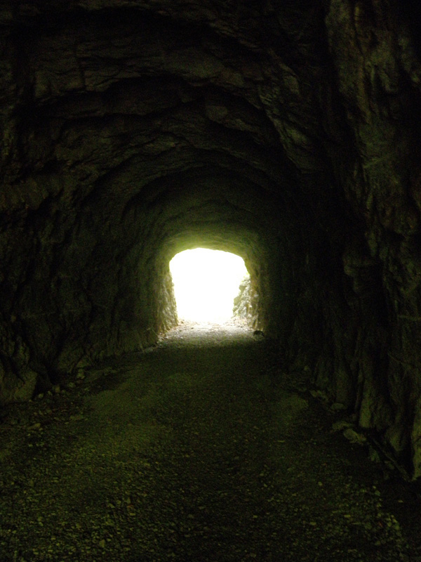 その直後、素掘りのトンネルがあった。 よくこんな大きな岩盤にトンネルを掘る気になったよね。 昔の人はすごい。