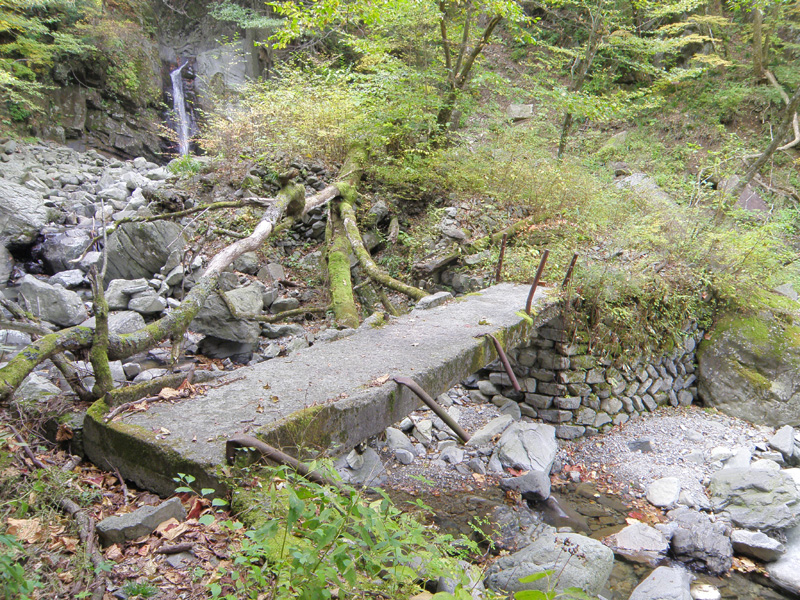 そこからも道は続き、壊れた橋を通り、天狗の子育ての穴を通り、ようやく「高瀑の滝」に到着。