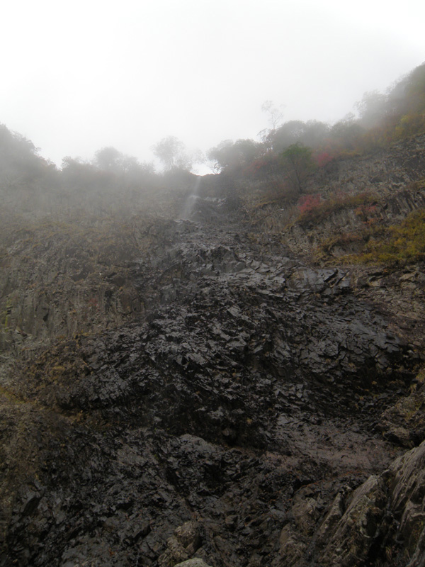 苦労しながらようやく滝まで戻ってきた。 滝の上部は白くよく見えない。