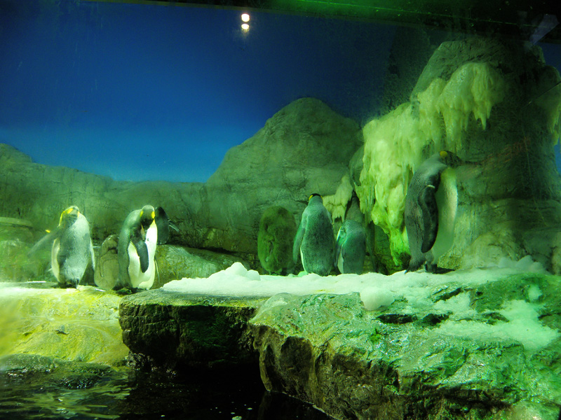 外ではペンギンがお出迎え。 ペンギンの散歩が定期的に行われているらしい。