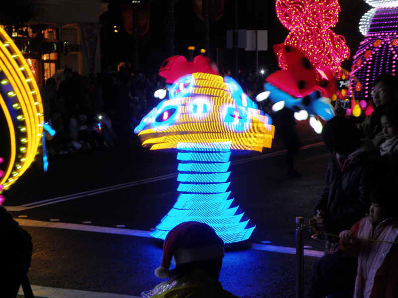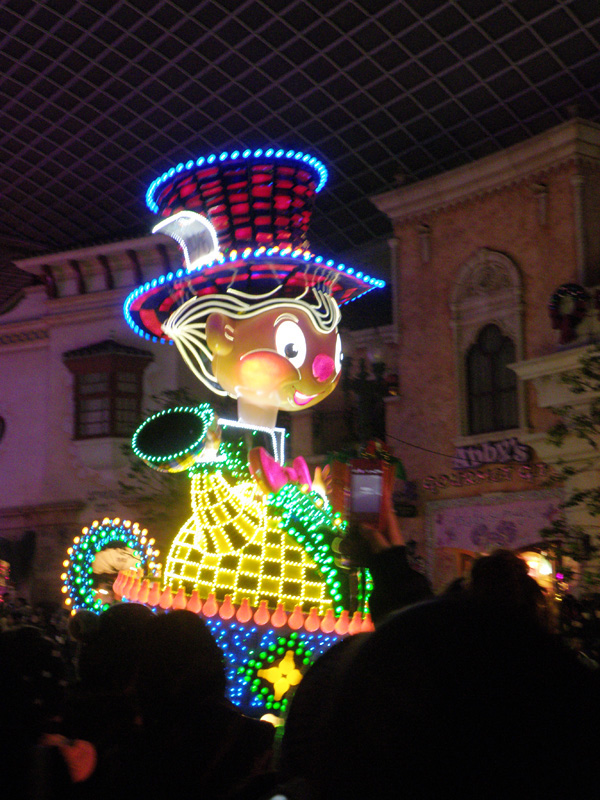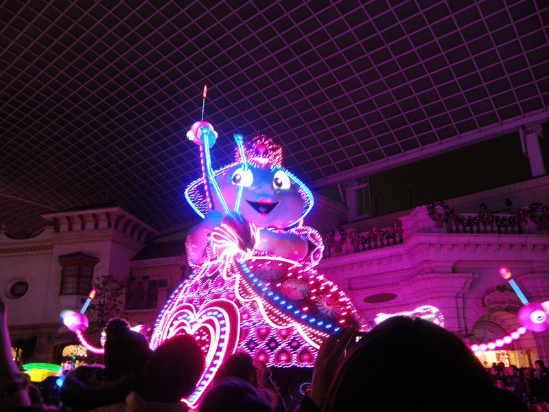 最後にパレードを鑑賞。 光のついた乗り物が大量にパレードしていった。 人がすごい。 そして音もすごい。