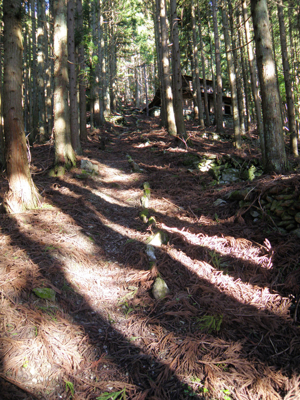 森の中に入ると待っていたのはかなりの急登。 やはりけっこう厳しい傾斜だ。