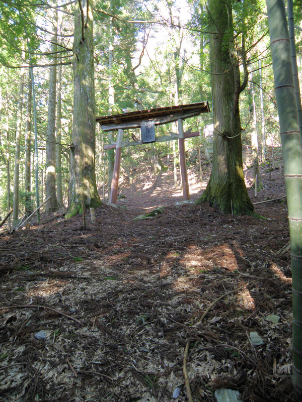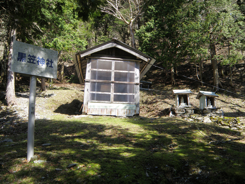 沢の音が聞こえる道になり、急な登りはまだまだ続く。 沢の音が聞こえなくなってから、ようやく黒笠神社に到着した。
