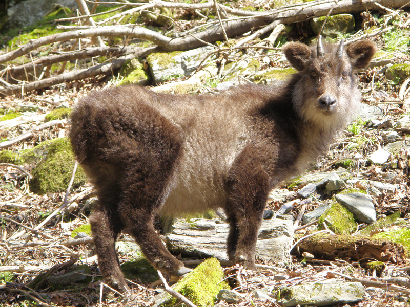 少し歩いていると、右手に何か気配を感じる… なんと……ニホンカモシカではないか! なんだか最近会いまくりだなぁ。