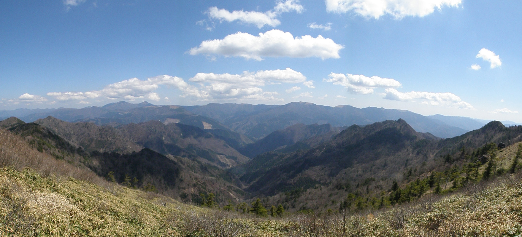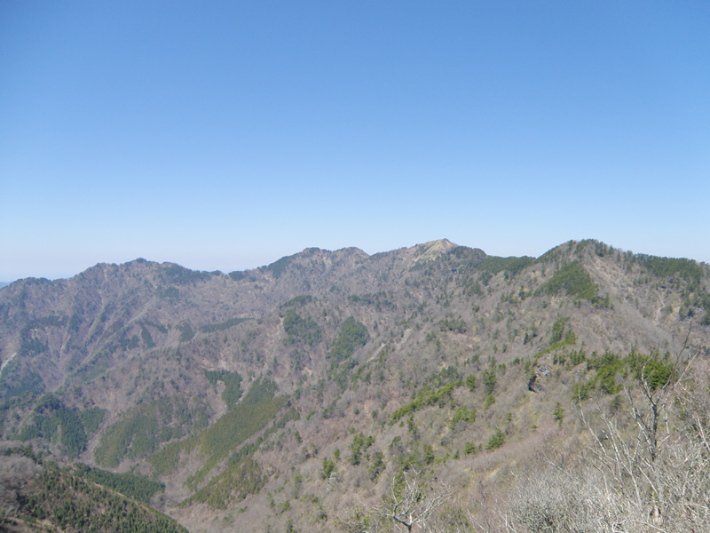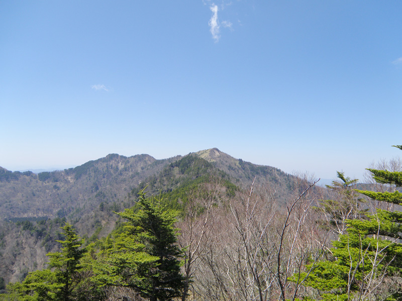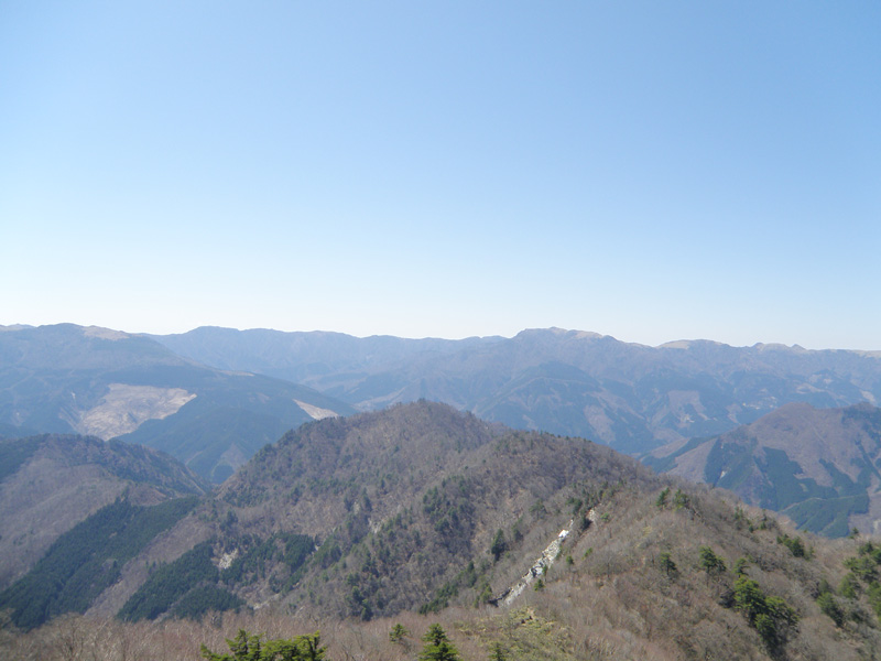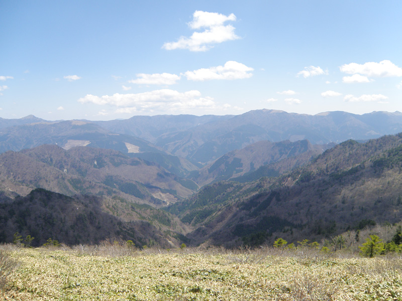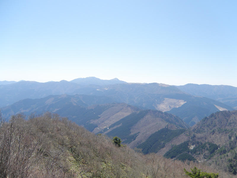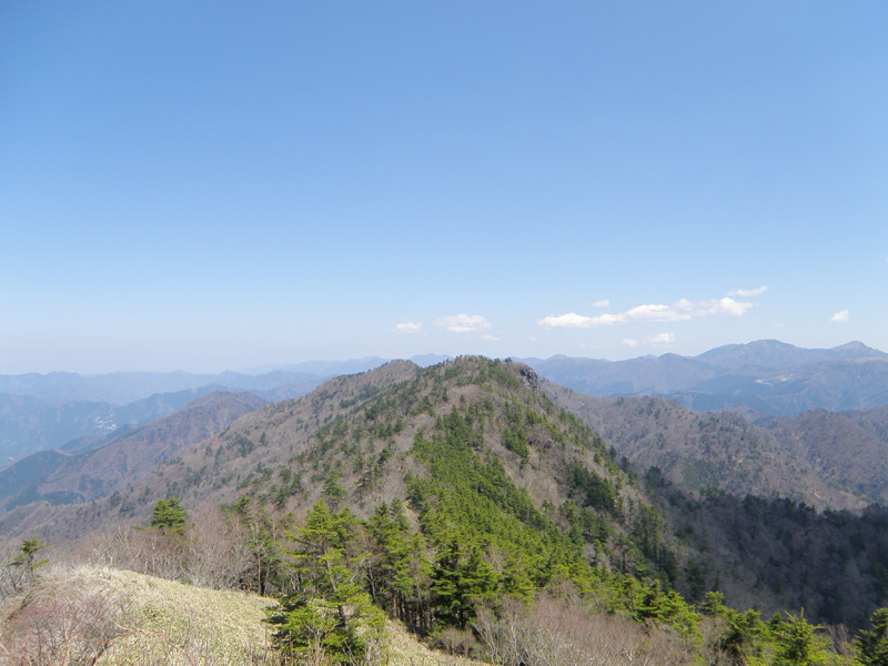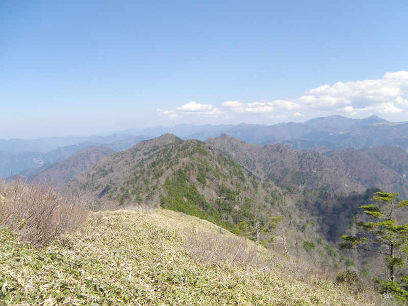 稜線まで登り、景色が一気に開けてきた。 遠くには剣山や次郎笈が見える。