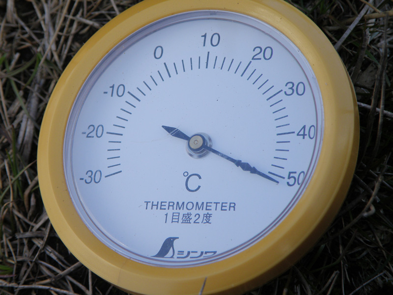 お湯を沸かしてコーンスープを飲みながら、ふと手元の温度計を見てみた。 すると……とんでもない温度を示していた。 やっぱ300円の温度計はこの程度か。