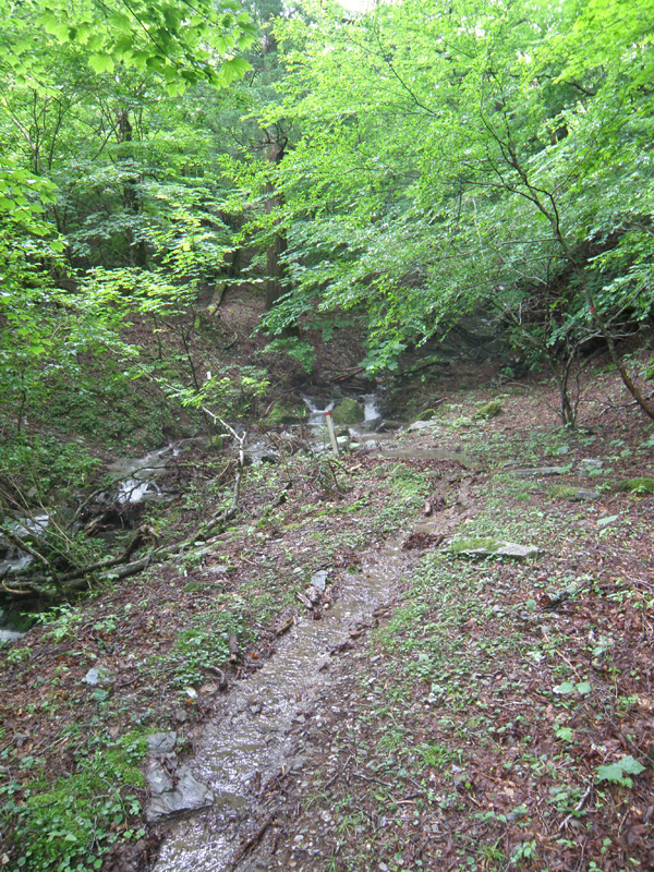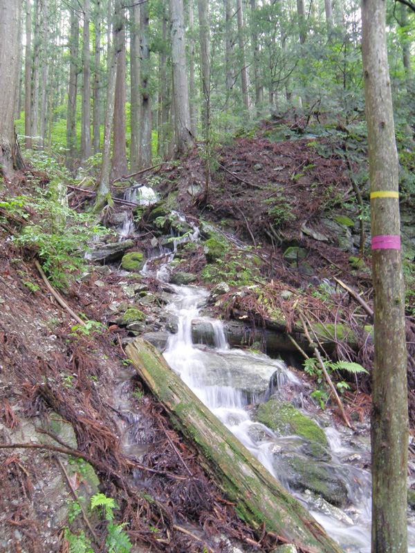 はじめはチョロチョロだったのが、だんだん水量が増えていく。 そしてしまいには沢のように… 横に本当の沢が流れているのだが、区別がつかない…