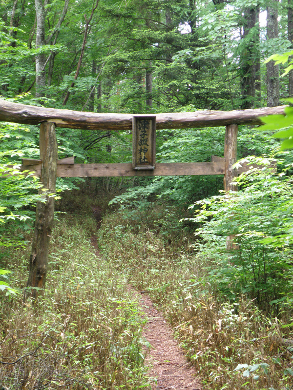この神社から先は道がガラッと変わった。 単調な林道歩きから、起伏があり、崖とかの出現する道に変わった。