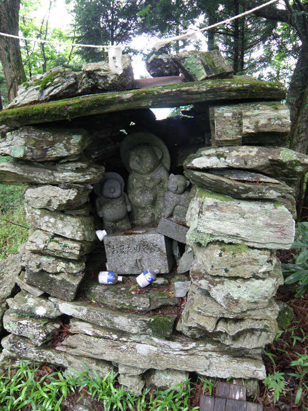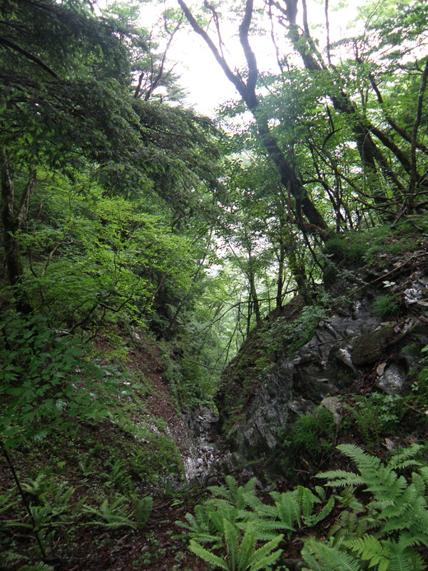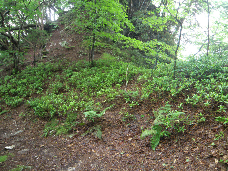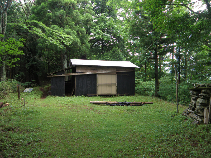 小屋の脇から登山道を上がっていく。 この辺りは石垣もあり、数十年前までは人が住んでいた様子だ。