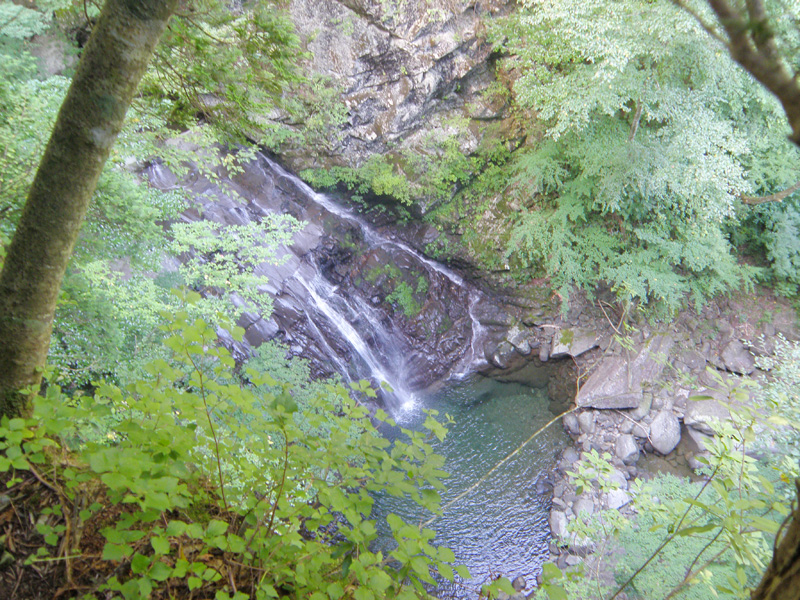 前回も何箇所かマークを見落とし、少し登り返したことがある。 今回は慎重に……と下って行っても、マークを見落とす。 何度か登りなおして、マークまで戻ったりしながら、滝まで下山。 しかし両膝がやられた…… 右足小指、左足小指もやられた。