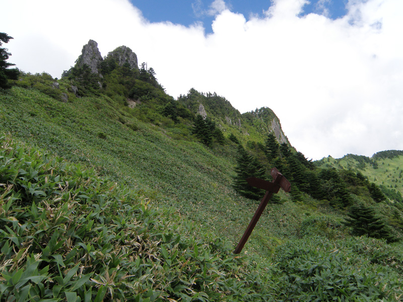 ニノ森方面を目指して歩き始める。 途中で、ニノ森まで向かってる単独の男性と会話した。 この時間にここにいるってことは、土小屋から登ってきたのかな? 成就からだと、ロープウェイに間に合わないだろう…