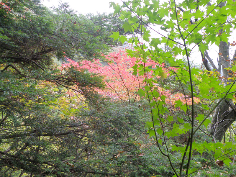 天気こそ悪いが、紅葉はとてもきれい。 青空だったら数倍綺麗に見えるだろう。