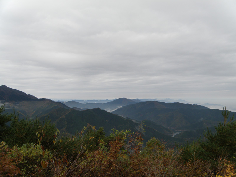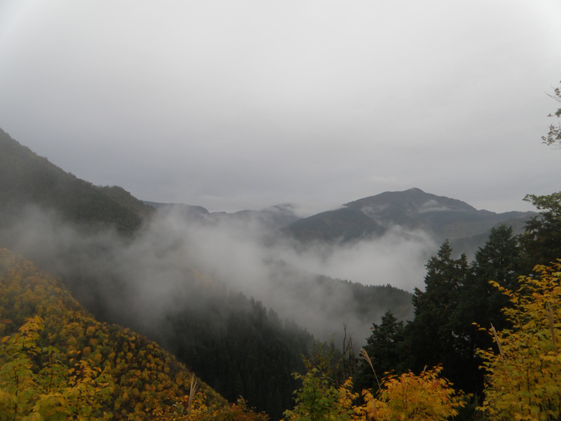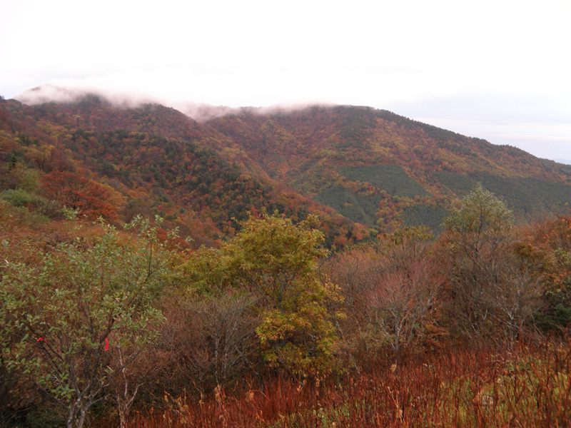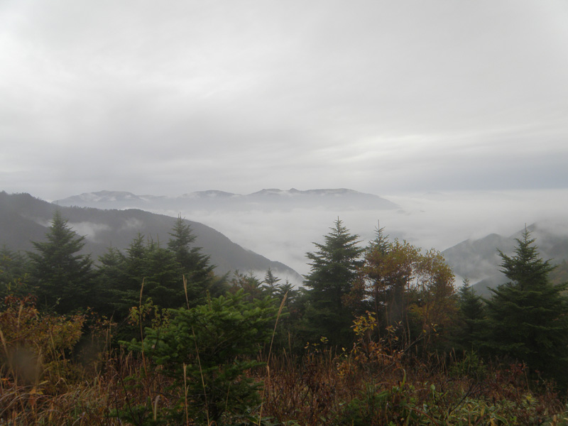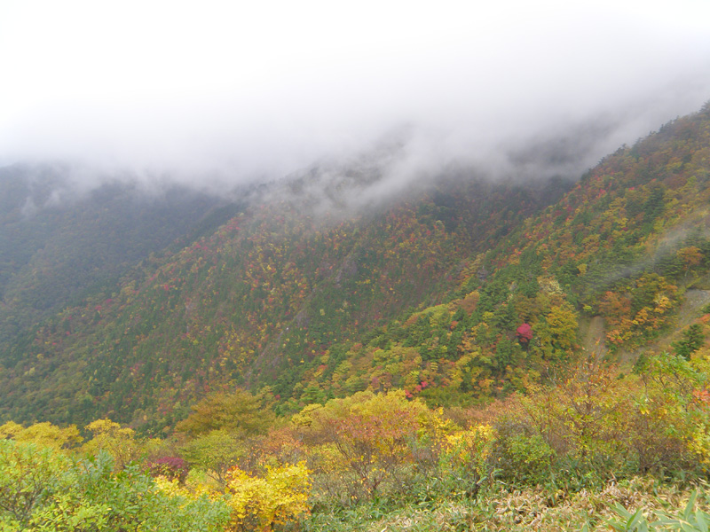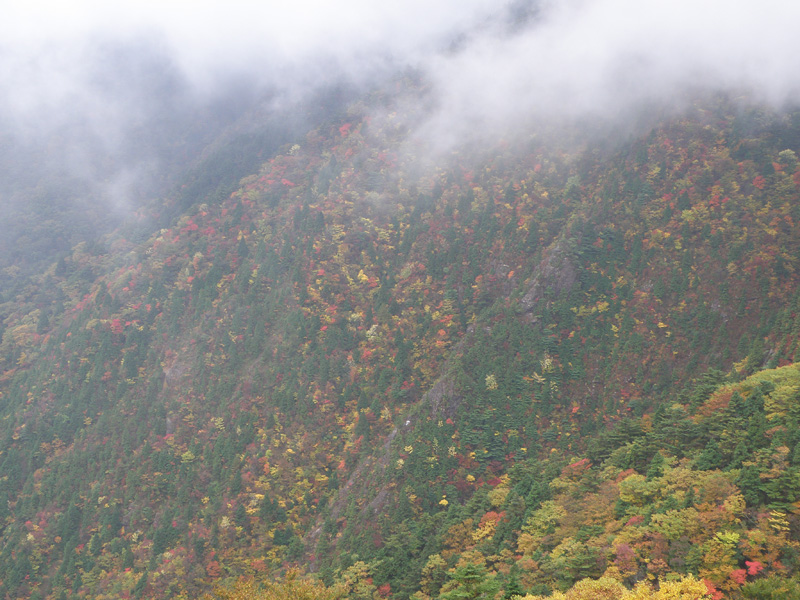 この時期、このあたりの山はとても綺麗な紅葉に包まれている。 景色を楽しみながらゆっくり歩こうと思ったのだが、紅葉の赤や黄色や茶色も見えることは見えるが、白い景色が多い。