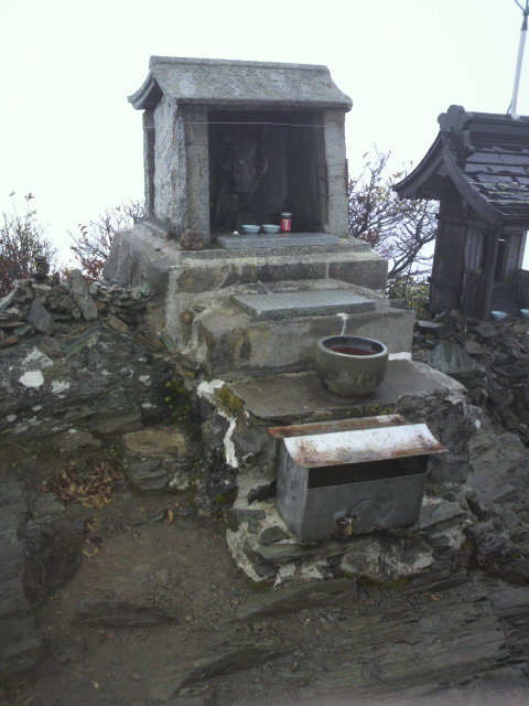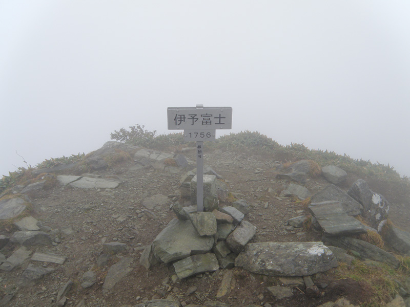 伊予富士直前の急登も風と戦いながら登る。 雪の時期は、この登りがすごい怖かった覚えがあったが、この時期ならばそうでもないな。 すぐに伊予富士山頂に到着。