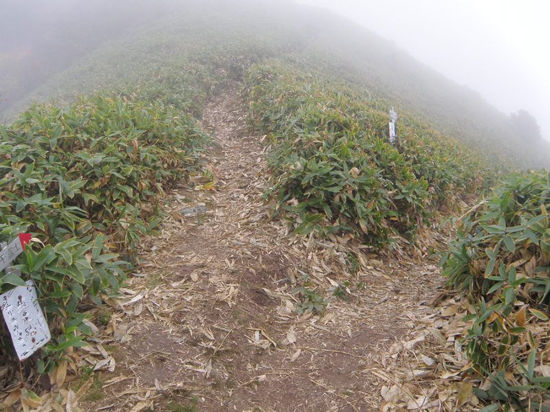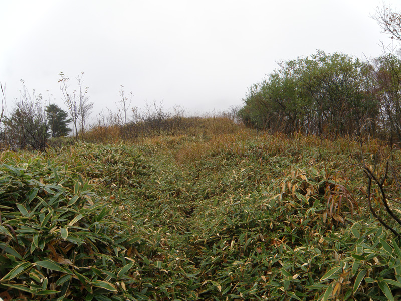そのまま車道を歩いていきジネンゴノ頭方面の登山口に入っていく。 ここからは笹の背丈が伸びてきた。