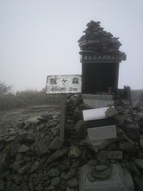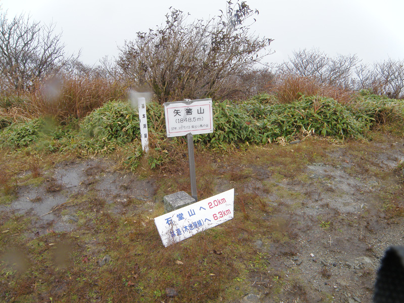 少し歩き、瓶ヶ森山頂に到着。 この時期ならめちゃめちゃ混んでそうな人気の山なのに、人の影は全く見えない。 山頂独占! が、雨が強いため写真だけ撮って退散。 男山方面から下りよう。