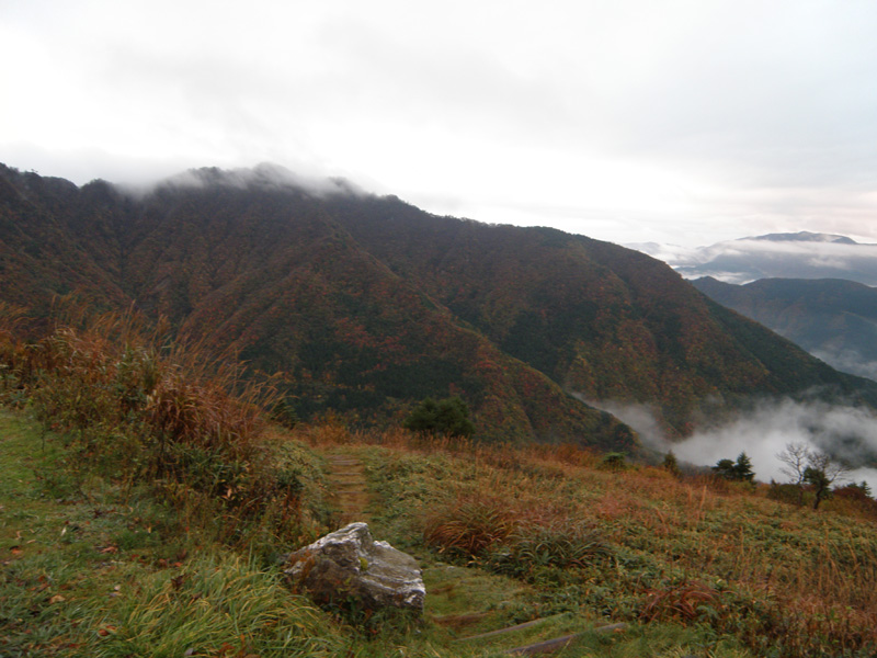 半分ほど登ったところで、上から人の話し声が。 先ほどの夫婦ではないか。 どうやら、車でこっちまで走ってきて、ここから瓶ヶ森をピストンした様子。 すれ違いの際に会話しただけ。 しかしあの夫婦もよくこの天気の中登ってるな。 遠くから来たのだろうか?