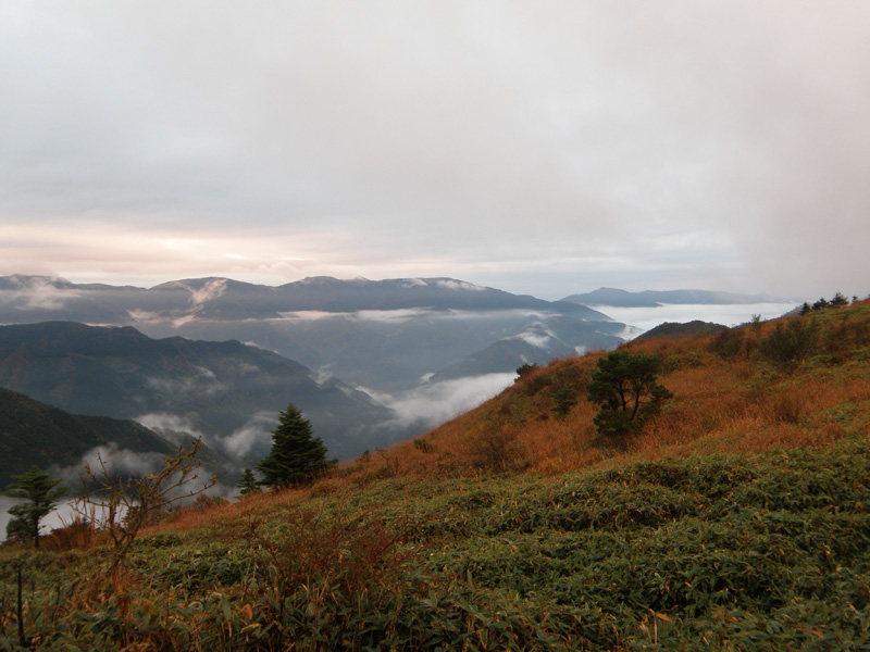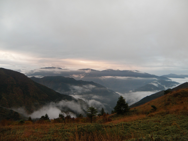 4時起床、4時20分出発。 今日は天気が悪い。 午後からは確実に雨が降ってくる。 まぁ縦走と言っても距離が短いし、車道にエスケープできるポイントが何箇所もあるので大丈夫だろう。