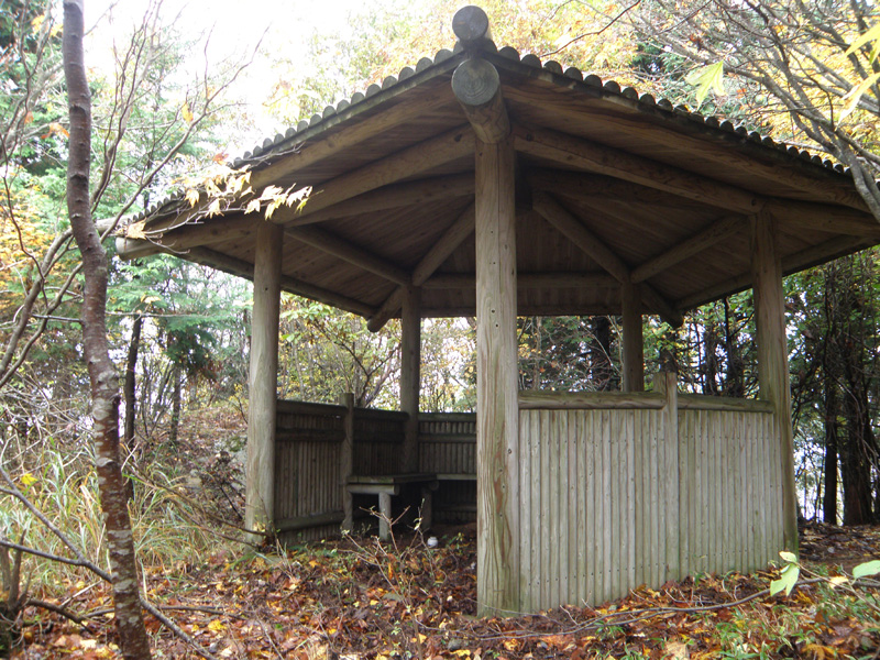 しばらく進むと東屋を発見。 かなり荒れている。 山頂は近いか?