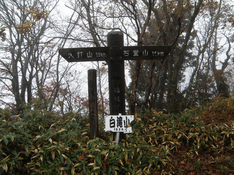 少し進み、白滝山に到着。 雨もけっこう降っているし、火打山で休んだばかりなので、先を目指す。
