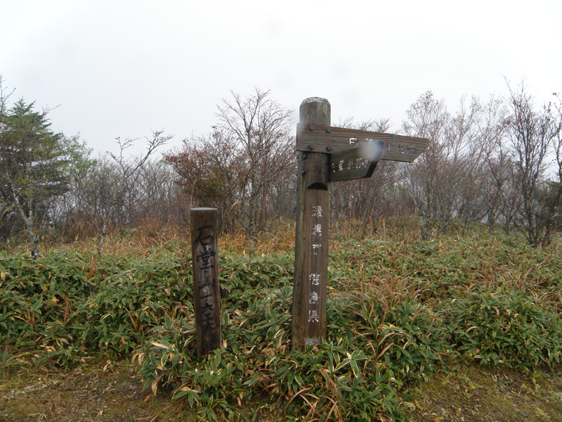 そして石堂山山頂に到着。 ここも雨の為、山頂は通過するだけに。
