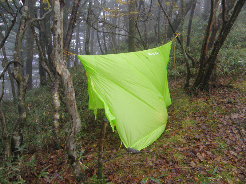ツエルトに包まって休憩したことはあるが、スリングを使って張るのは初めて。