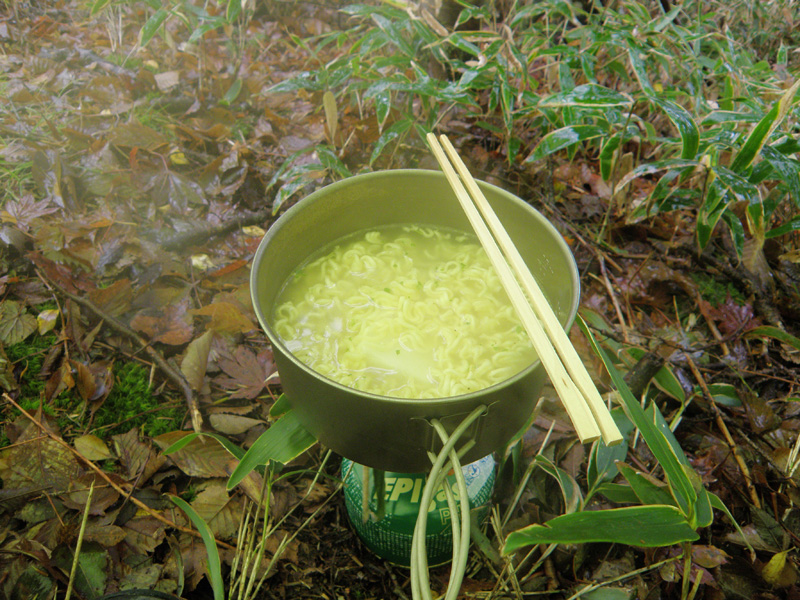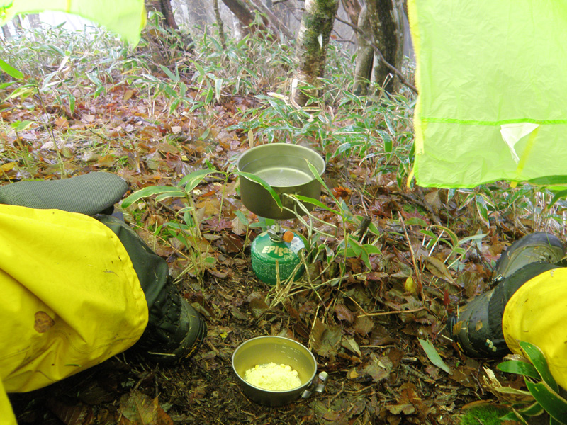 ラーメンはとても温かく幸せだった。 ザックカバーをしてから、ここに来るまで何度かザックの中を開けてるのでザックの中もけっこう濡れてきている。