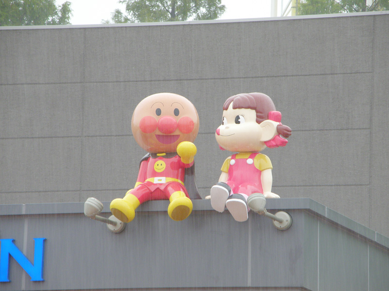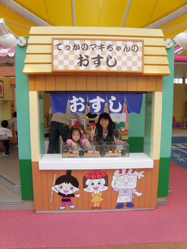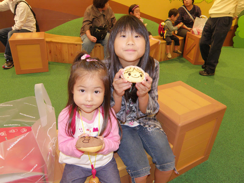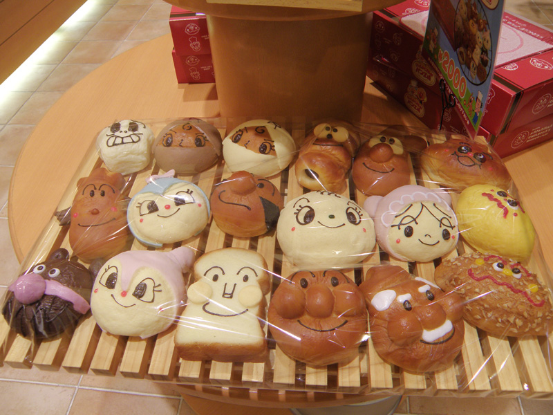 それからアンパンマンのパンを食べたり、アンパンマンのショーを見たり。 お土産屋もけっこう広く、いろいろなものが売っていた。 不二家レストランもあり、アンパンマンとのコラボレーション作品もあった。