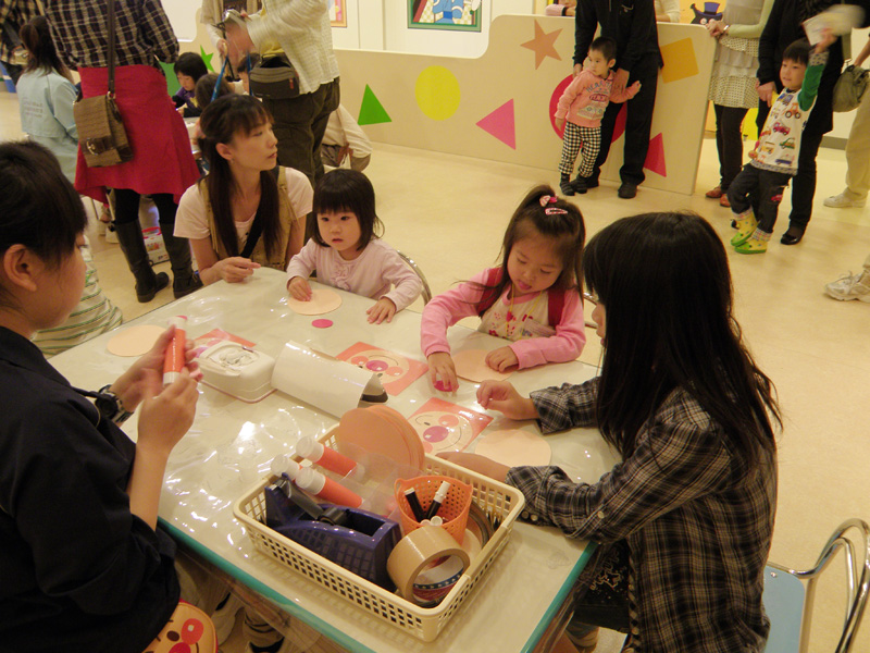 長男が遊べそうな場所もあり、長男も退屈せず遊んでいた。 工作の時間もあり、子供達二人はアンパンマンのお面を作った。