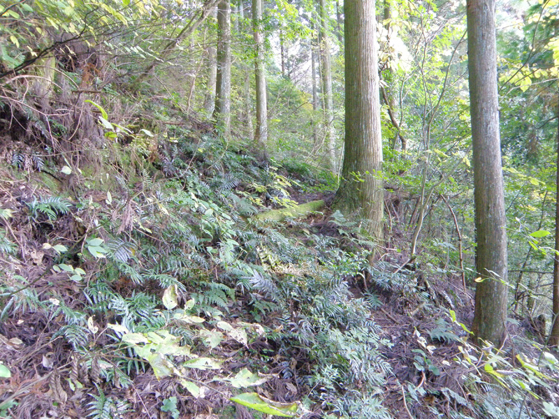 朽ちた看板があったので気付いたのだが、うっかりしてると見落としそうだ…… 出だしは踏み跡もほとんどないし。