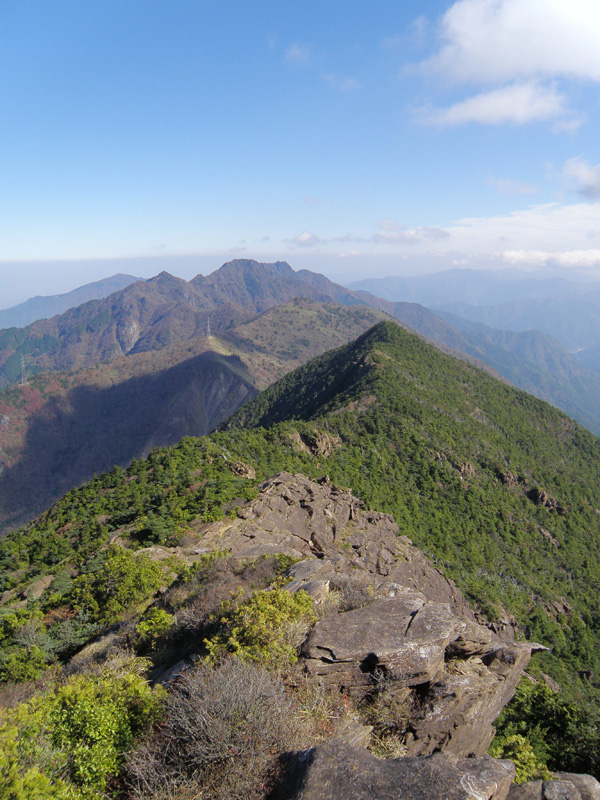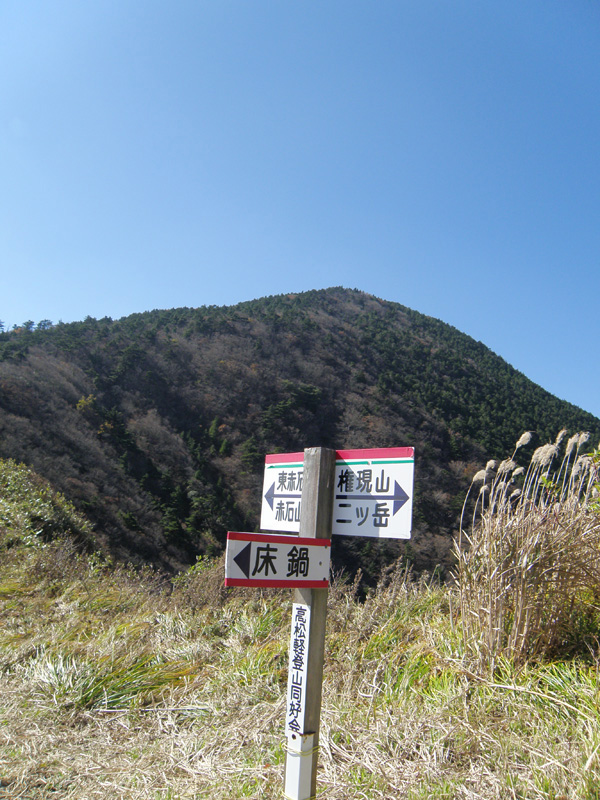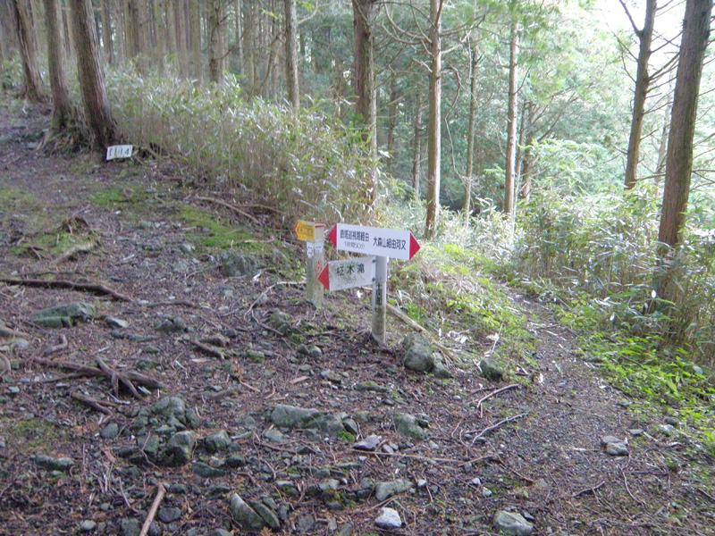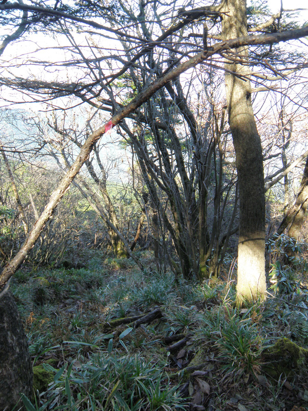 稜線に合流した地点まで戻り、権現越に向かう。 県道6号線の床鍋登山口から登ってくると、この権現越えに上がってくるみたい。