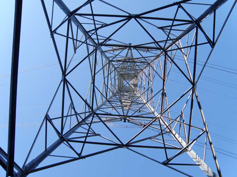 気持ちのいい樹林帯を歩く。 鉄塔の真下も何度か通る。 青空が気持ちいい。